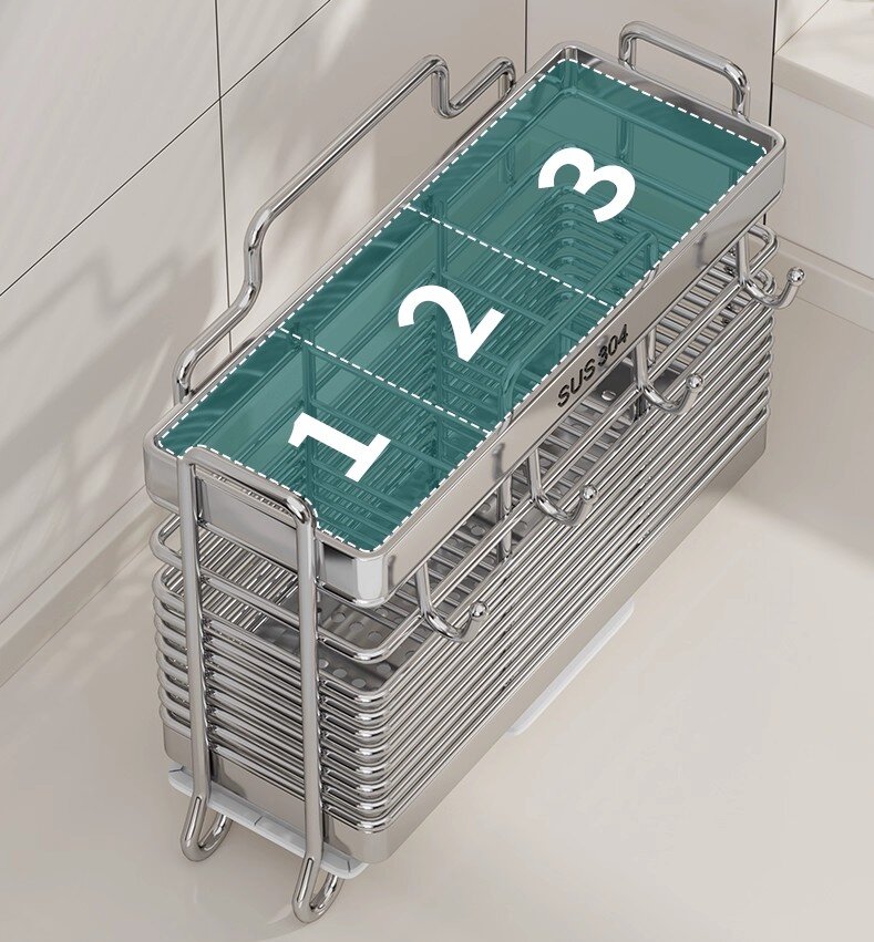 Three Frames Utensil Holder의 뛰어난 특징 중 하나는 지능형 3칸 디자인입니다. 식기를 뒤죽박죽으로 두는 많은 단일 칸막이 홀더와 달리 이 디자인은 분류가 가능합니다. 숟가락, 포크, 칼을 쉽게 분리할 수 있으며 집게나 주걱과 같은 특수 도구를 전용으로 사용하는 공간도 있습니다. 이렇게 하면 필요한 도구를 빠르게 찾을 수 있을 뿐만 아니라 조리대를 깔끔하게 유지할 수 있습니다. 일부 다른 홀더에는 하나의 큰 공간이 있을 수 있으며, 이는 식기가 넘어지고 얽히면서 빠르게 혼란스러운 혼란으로 변할 수 있습니다. 세심한 레이아웃이 돋보이는 3프레임 식기 홀더는 각 식기를 지정된 위치에 배치하여 더욱 정돈되고 효율적인 주방을 만들어줍니다.